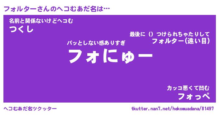 | ポケモン風あだ名 | 『フォチュウ』『フォルダネ』 |