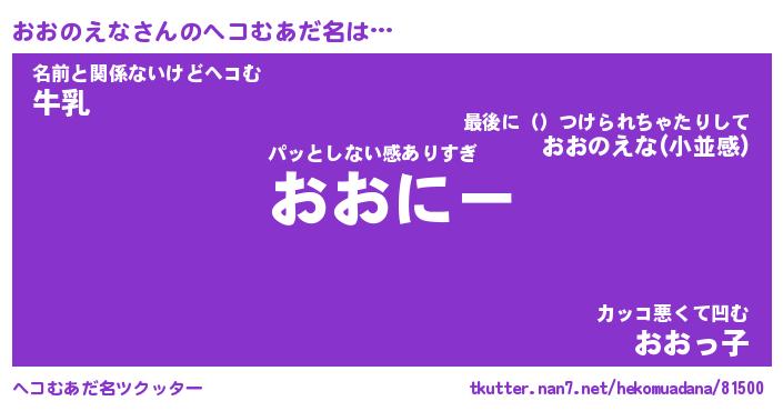 | 意味不明あだ名 | 『ペロリンおおのえな』 |