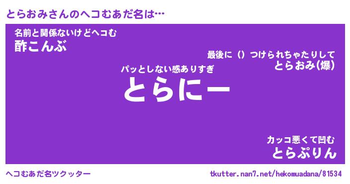 | 意味不明あだ名 | 『ペロリンとらおみ』『永久保存とらおみ』 |