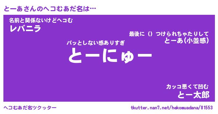 | ポケモン風あだ名 | 『トーチュウ』『トーアダネ』 |