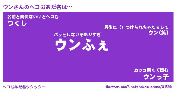 | ファンタジー風あだ名 | 『ウンフェル』『エターナルウンー』 |