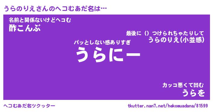 | 2回繰り返すあだ名 | 『うらうら』『ううらら』『ぬれぬれ』 |