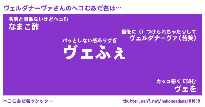 | ポケモン風あだ名 | 『ヴェチュウ』『ヴェルダネ』 |