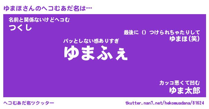 | ポケモン風あだ名 | 『ユマチュウ』『ユマホダネ』 |