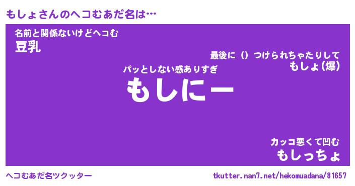 | ポケモン風あだ名 | 『モシチュウ』『モショダネ』 |