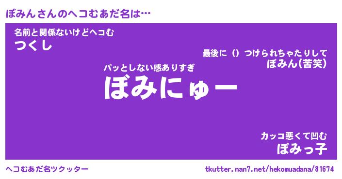 | ヒーロー風カッコイイあだ名 | 『スーパーボミン』『ウルトラぼみんマン』 |