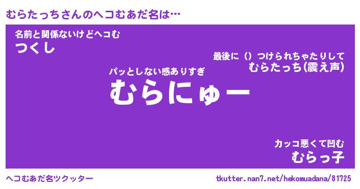 | ヒーロー風カッコイイあだ名 | 『スーパームラタッチ』『天弓騎士ムラ』 |