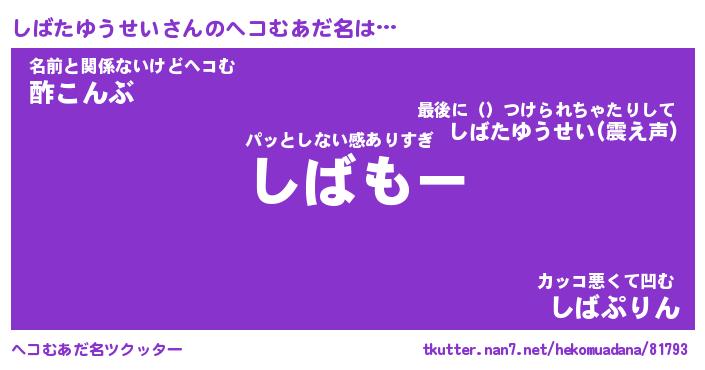 | ポケモン風あだ名 | 『シバチュウ』『シバタダネ』 |