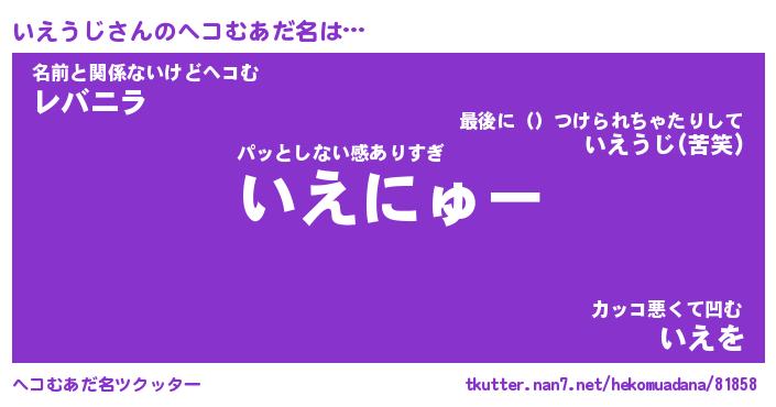 | 意味不明あだ名 | 『ペロリンいえうじ』『永久保存いえうじ』 |