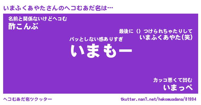 | 男性向けラノベタイトル風あだ名 | 『いまふくあやたの憂鬱』 |
