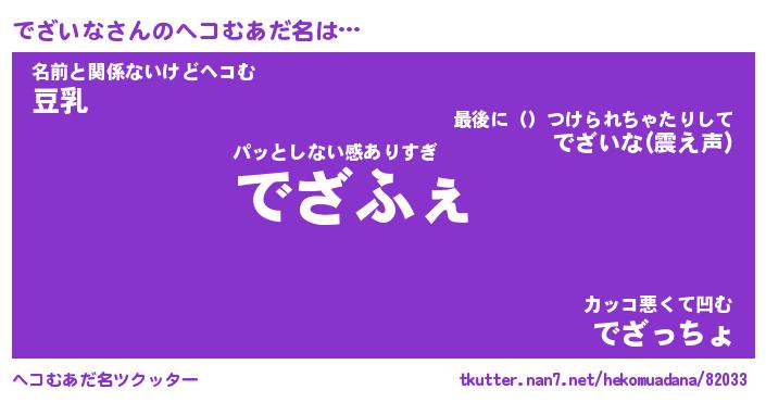 | 2回繰り返すあだ名 | 『でざでざ』『ででざざ』『ぬめぬめ』 |