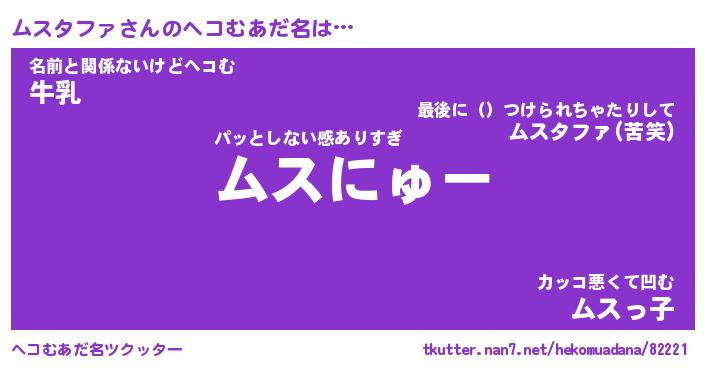 | ポケモン風あだ名 | 『ムスチュウ』『ムスタダネ』 |