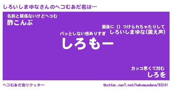 | 意味不明あだ名 | 『ペロリンしろいしまゆな』 |