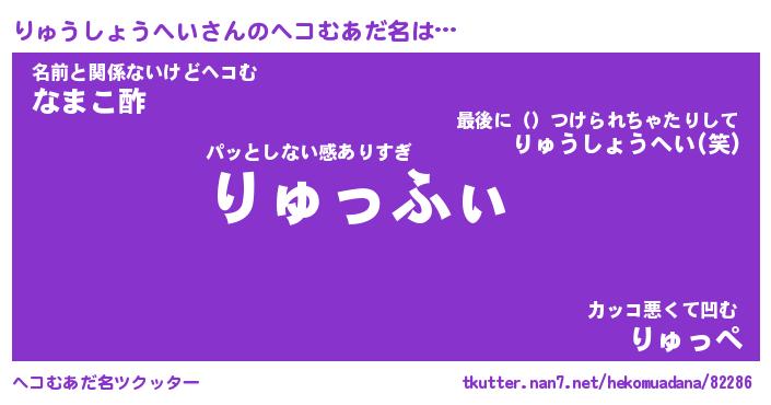 | 男性向けラノベタイトル風あだ名 | 『りゅうしょうへいの憂鬱』 |