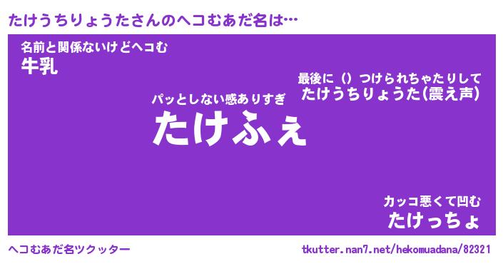 | 2回繰り返すあだ名 | 『たけたけ』『たたけけ』『うるうる』 |