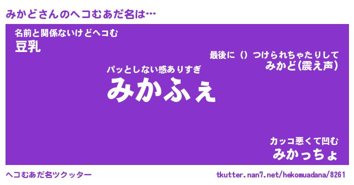| ポケモン風あだ名 | 『ミカチュウ』『ミカドダネ』 |