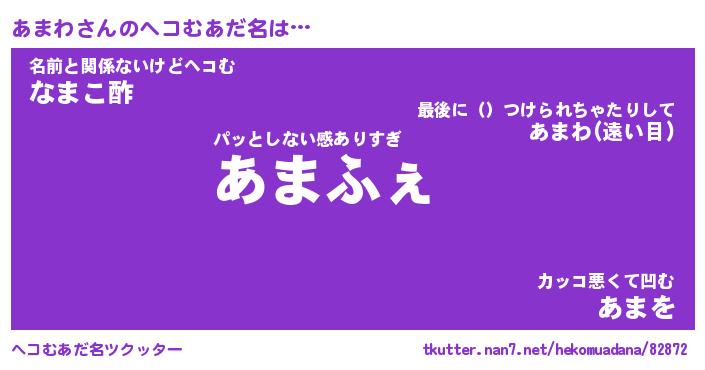 | ファンタジー風あだ名 | 『アマフェル』『エターナルアマワー』 |