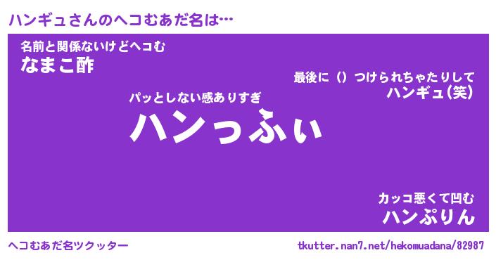 | 意味不明あだ名 | 『ペロリンハンギュ』『永久保存ハンギュ』 |