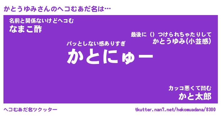 | ファンタジー風あだ名 | 『カトフェル』『エターナルカトウユミー』 |