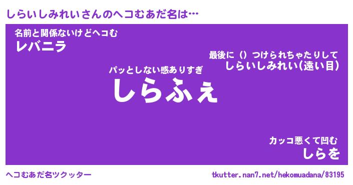 | 意味不明あだ名 | 『ペロリンしらいしみれい』 |