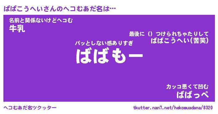 | ヒーロー風カッコイイあだ名 | 『スーパーババコウヘイ』『幻影騎士ババ』 |