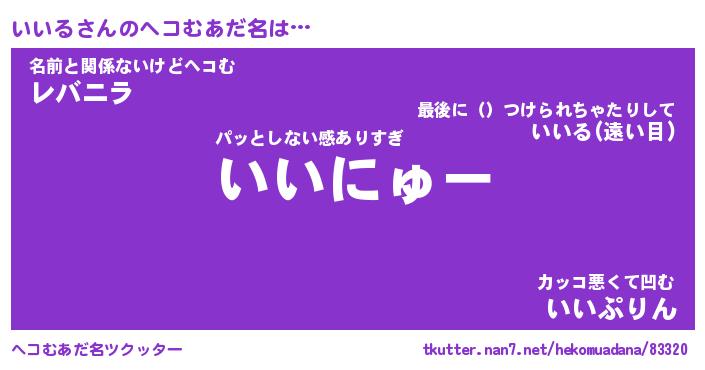 | 意味不明あだ名 | 『ペロリンいいる』『いいるフォーエバー』 |