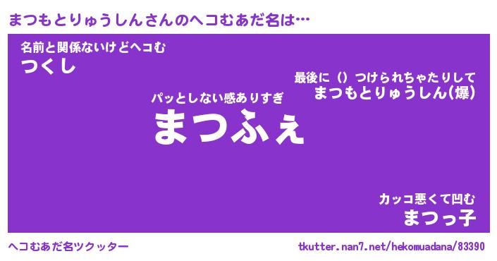 | 男性向けラノベタイトル風あだ名 | 『まつもとりゅうしんの憂鬱』 |