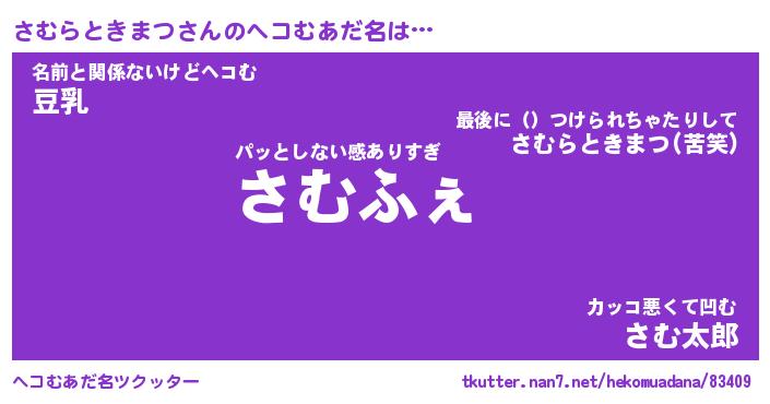 | ヒーロー風カッコイイあだ名 | 『スーパーサムラトキマツ』 |