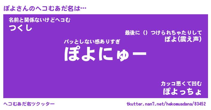 | ポケモン風あだ名 | 『ポヨチュウ』『ポヨダネ』『ヒポヨ』 |