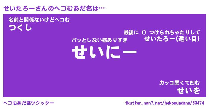 | 男性向けラノベタイトル風あだ名 | 『せいたろーの憂鬱』 |