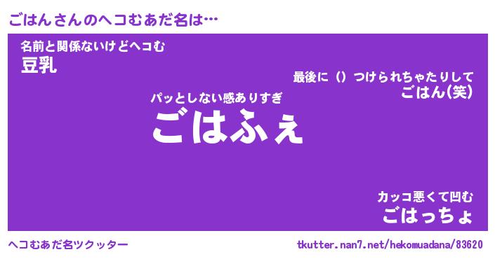 | ファンタジー風あだ名 | 『ゴハフェル』『エターナルゴハンー』 |