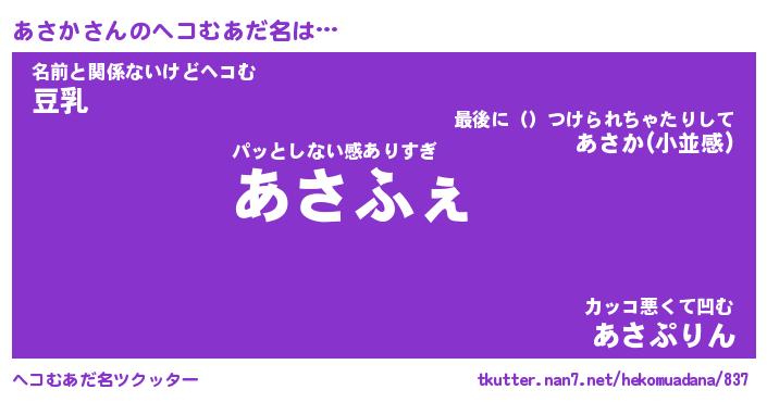 | ファンタジー風あだ名 | 『アサフェル』『エターナルアサカー』 |