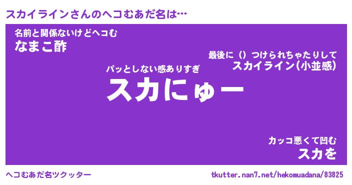 | ヒーロー風カッコイイあだ名 | 『スーパースカイライン』『銀牙騎士スカ』 |