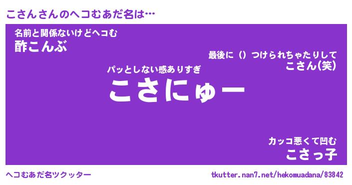| ヒーロー風カッコイイあだ名 | 『スーパーコサン』『ウルトラこさんマン』 |