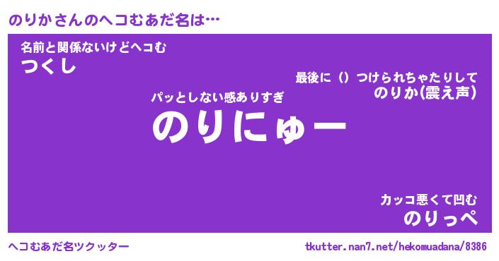| 意味不明あだ名 | 『ペロリンのりか』『のりかフォーエバー』 |