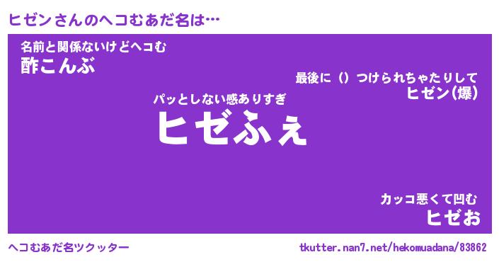| ファンタジー風あだ名 | 『ヒゼフェル』『エターナルヒゼンー』 |