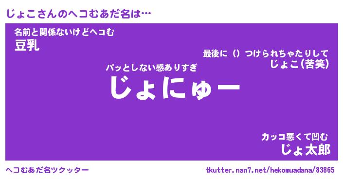| ヒーロー風カッコイイあだ名 | 『スーパージョコ』『ウルトラじょこマン』 |