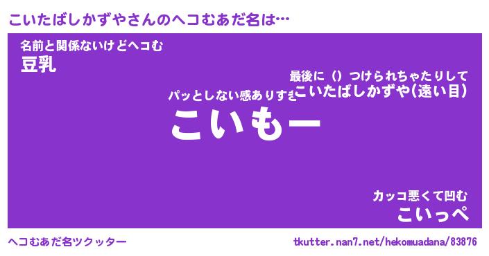 | 男性向けラノベタイトル風あだ名 | 『こいたばしかずやの憂鬱』 |