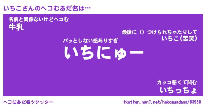 | ヒーロー風カッコイイあだ名 | 『スーパーイチコ』『ウルトラいちこマン』 |