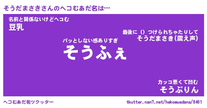 | 自動車の名前っぽいあだ名 | 『ソウティマ』『ソクア』『ソント』 |