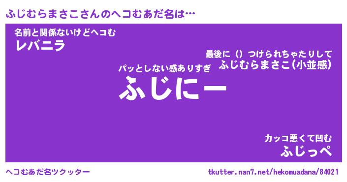 | 恥ずかしいあだ名 | 『プリティーふじむらまさこ』『ふじちん』 |