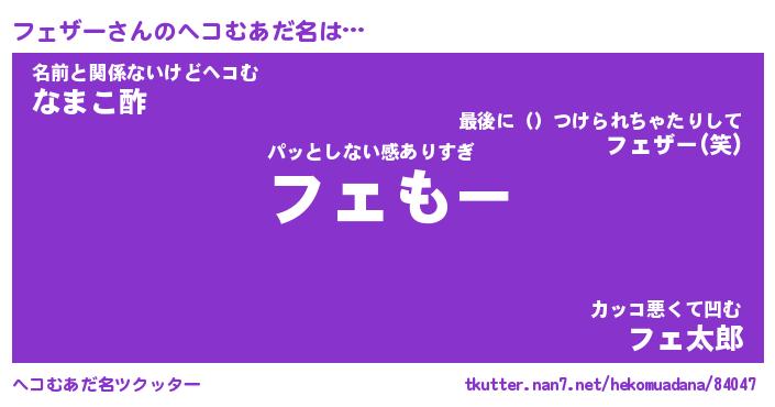 | 意味不明あだ名 | 『ペロリンフェザー』『永久保存フェザー』 |