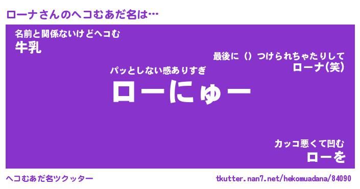| 意味不明あだ名 | 『ペロリンローナ』『ローナフォーエバー』 |