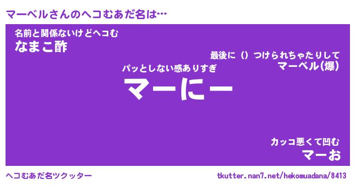 | ヒーロー風カッコイイあだ名 | 『スーパーマーベル』『魔戒騎士マー』 |
