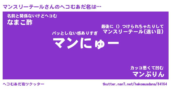 | 男性向けラノベタイトル風あだ名 | 『マンスリーテールの憂鬱』 |