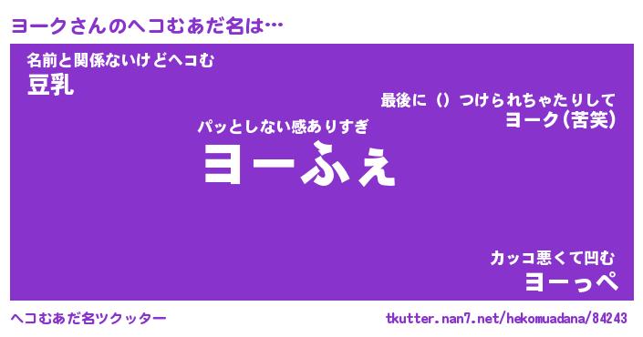 | ファンタジー風あだ名 | 『ヨーフェル』『エターナルヨークー』 |