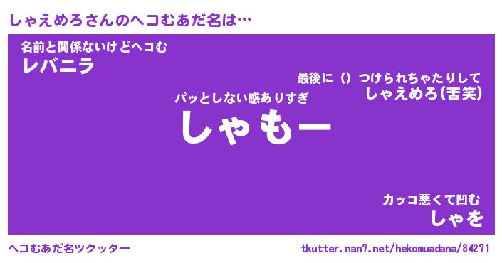 | 胡散臭い通販商品みたいなあだ名 | 『億万長者になれる霊験あらたかなお札…その名も「しゃえめろ」』 |
