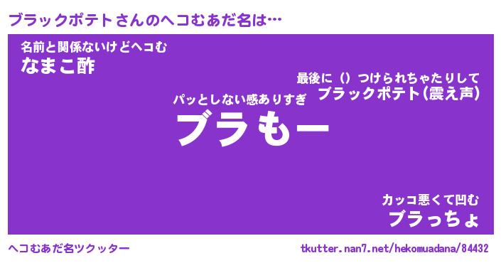| 恥ずかしいあだ名 | 『プリティーブラックポテト』『ブラちん』 |