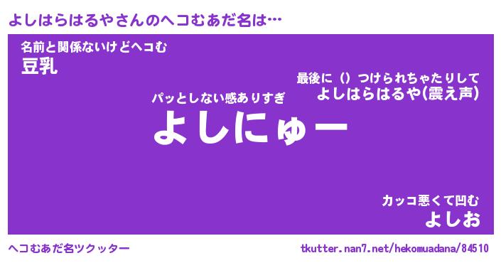 | 男性向けラノベタイトル風あだ名 | 『よしはらはるやの憂鬱』 |