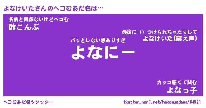 | ファンタジー風あだ名 | 『ヨナフェル』『エターナルヨナケイター』 |